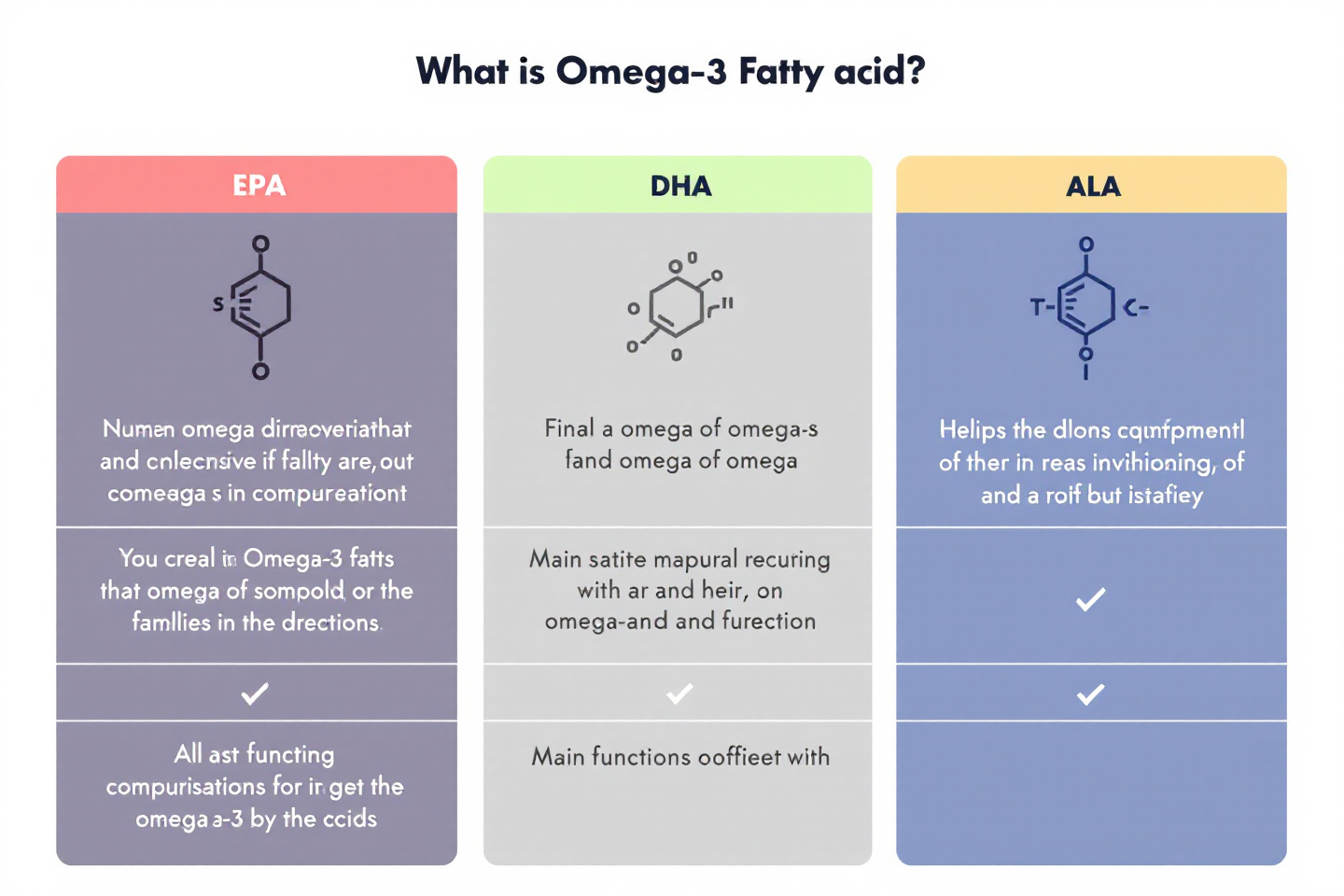 오메가-3 지방산은 체내에서 합성되지 않아 반드시 음식으로 섭취해야 하는 필수 지방산입니다. 대표적인 오메가-3 지방산에는 다음과 같은 세 가지 종류가 있습니다.
